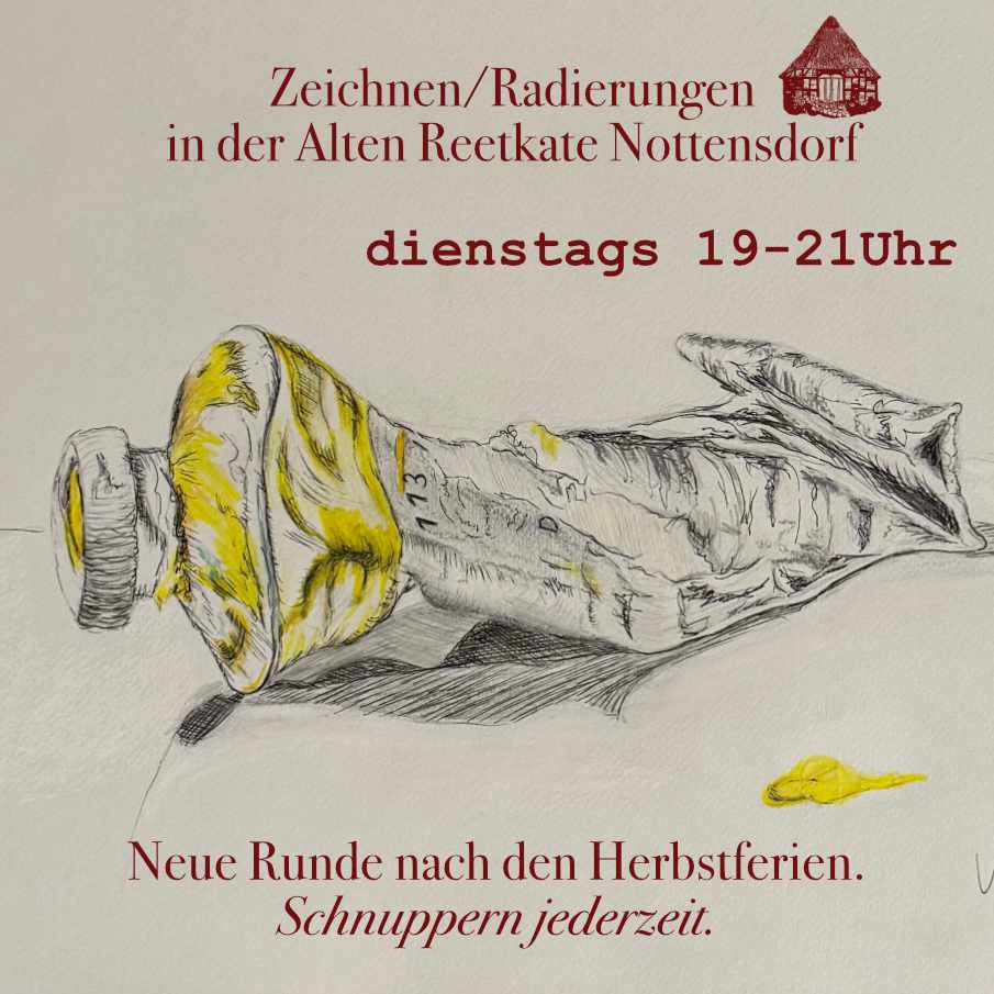 Ab November (nach den Herbstferien in Niedersachsen) geht es dann wieder los mit einem kleinen Kursangebot unter der Woche. Mein Hauptanliegen in diesem Angebot liegt darin, jeden Teilnehmer dort abzuholen und zu begleiten, wo er künstlerisch gerade steht. Technische Übungen und freies Arbeiten zur Vertiefung wechseln sich dabei ab.
